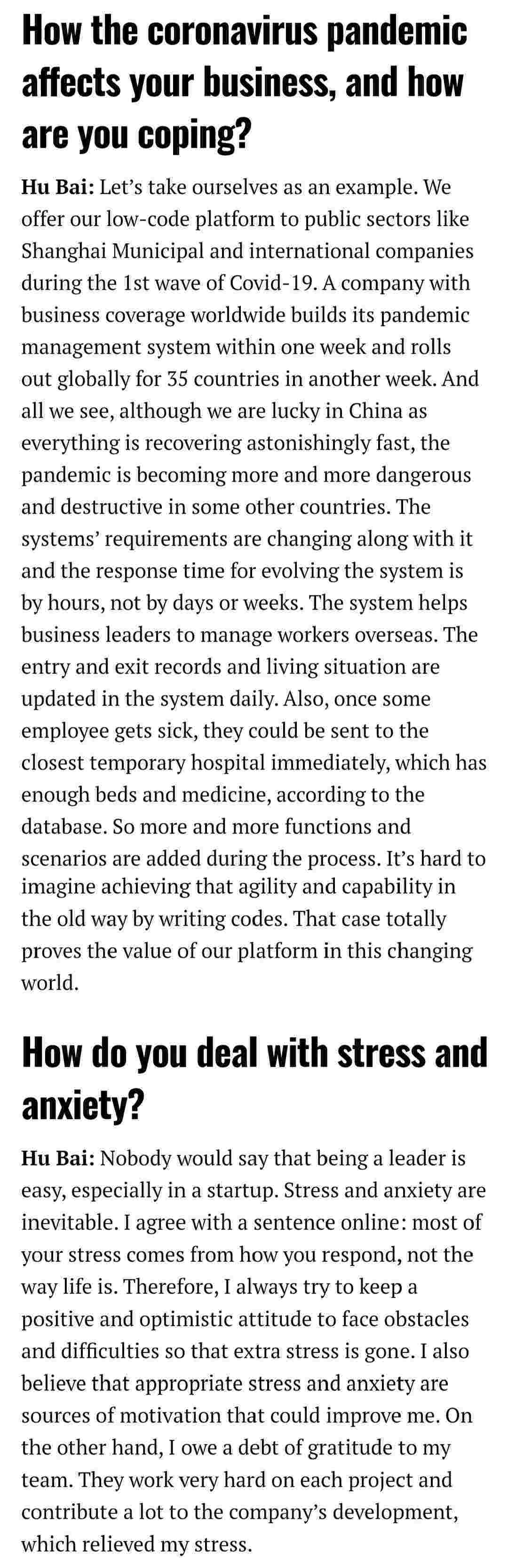 2021年年初,,,爱湃斯科技CEO胡柏受邀接受法媒Startup.info的专访,,,与Startup info的读者分享了自己的创业经历、、以及低代码平台钱能钱包的创新之处。。。。